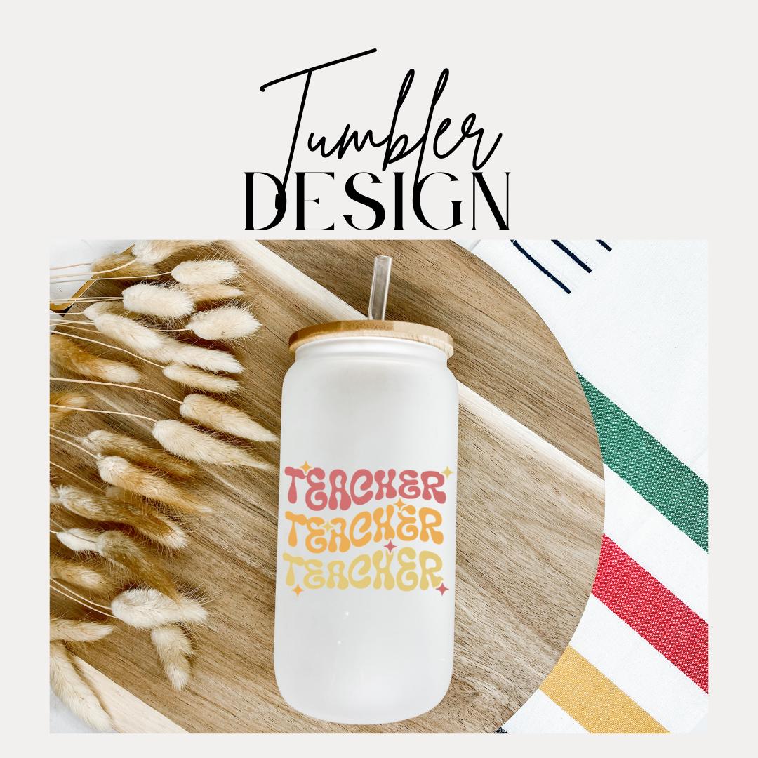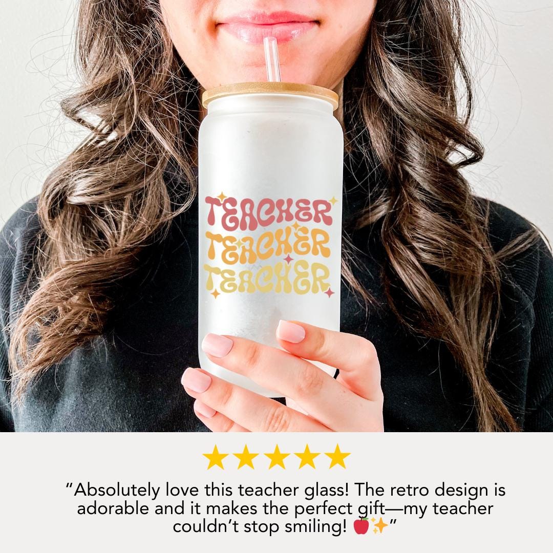 16 oz Frosted Glass Teacher with Bamboo Lid & Straw Cute Retro Teacher Gift Teacher Appreciation Gift Drinkware for Teacher Gift for Her
