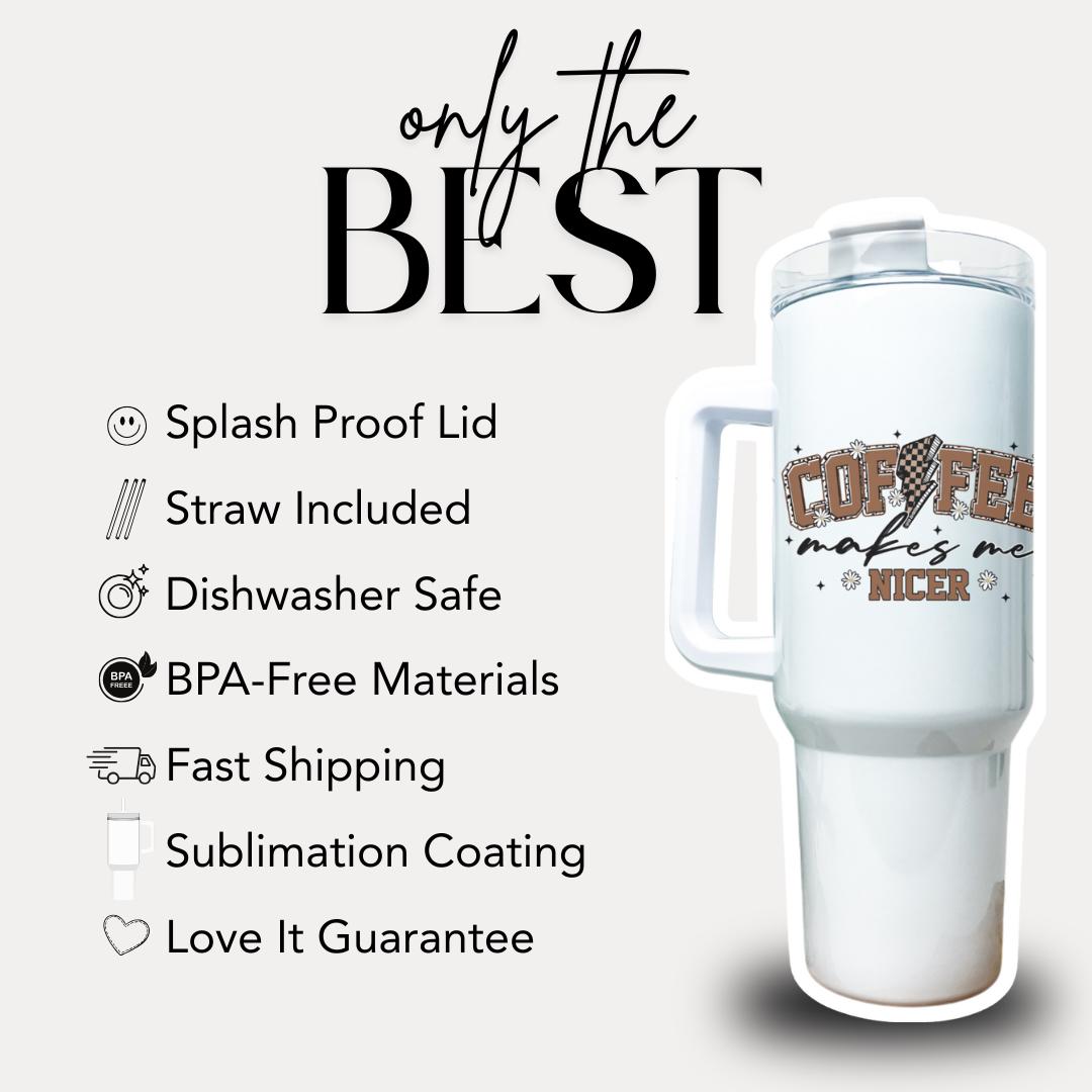 Coffee Makes Me Nicer Tumbler 40oz Funny Mug with Straw & Handle Perfect Coffee Lover Tumbler Gift for Coffee Addict Best Coffee Gift Ever