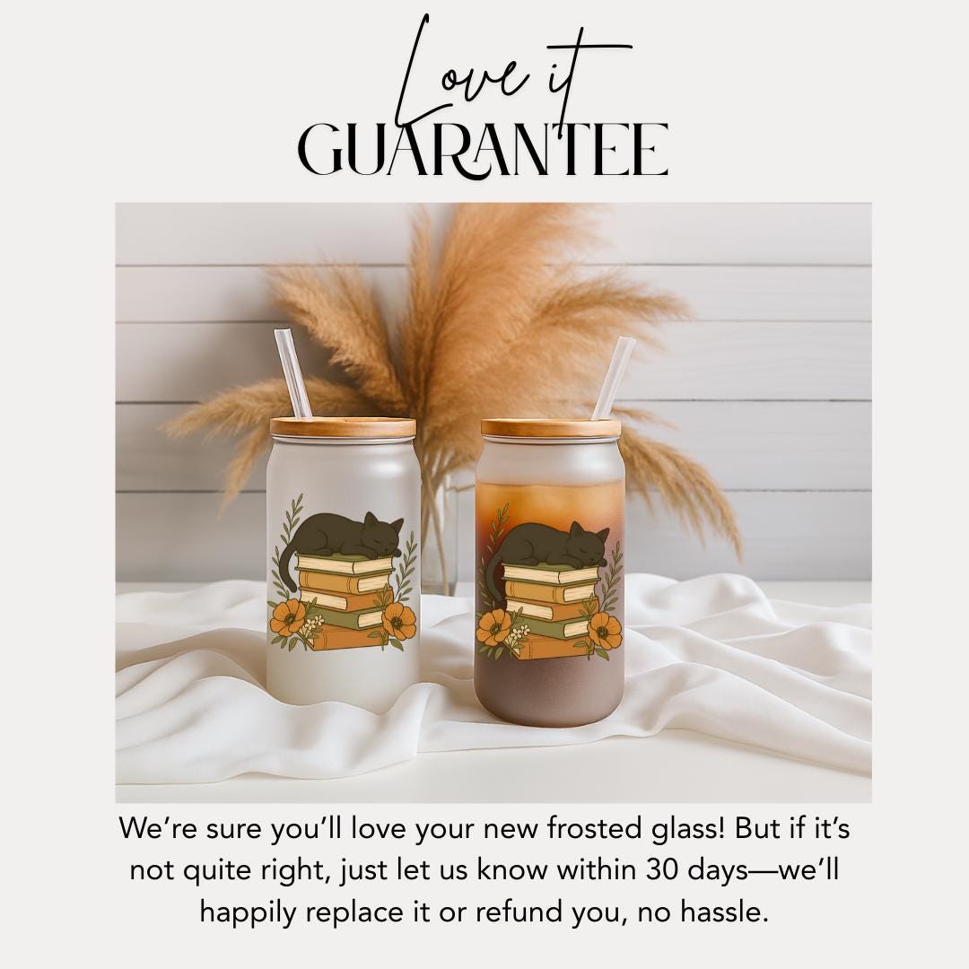 Cozy vibes in every sip! πΏπΎ This Optimistic Gifts Co 16oz Frosted Glass Cup with Bamboo Lid & Clear Plastic Straw is the perfect mix of practical and aesthetic. Featuring an adorable design of a sleepy cat curled up on books surrounded by flowers, it's a must-have for bookworms, coffee lovers, and anyone who adores cozy cottagecore style. β¨