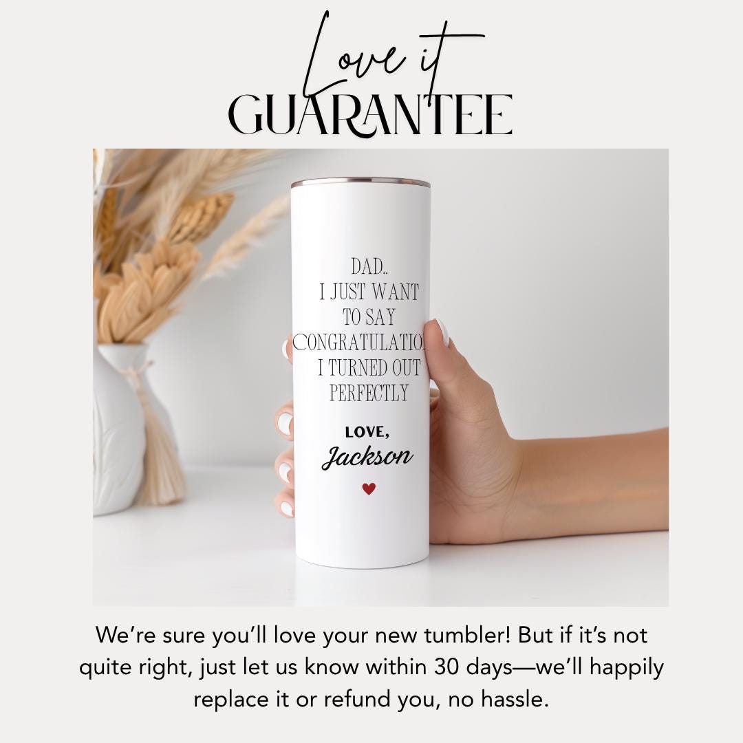 Dad Custom Name 20 oz Tumbler with Funny Message “I Turned Out Perfectly Personalized Dad Cup with Straw Gift for Birthday or Fathers Day