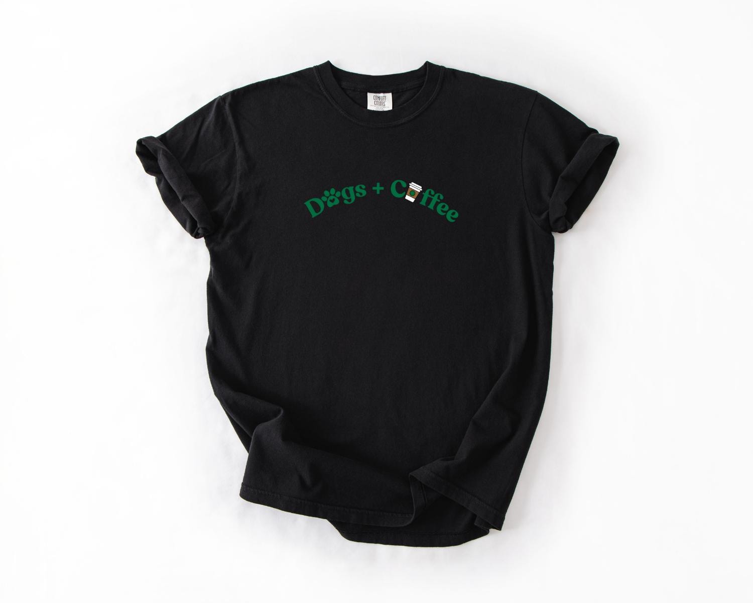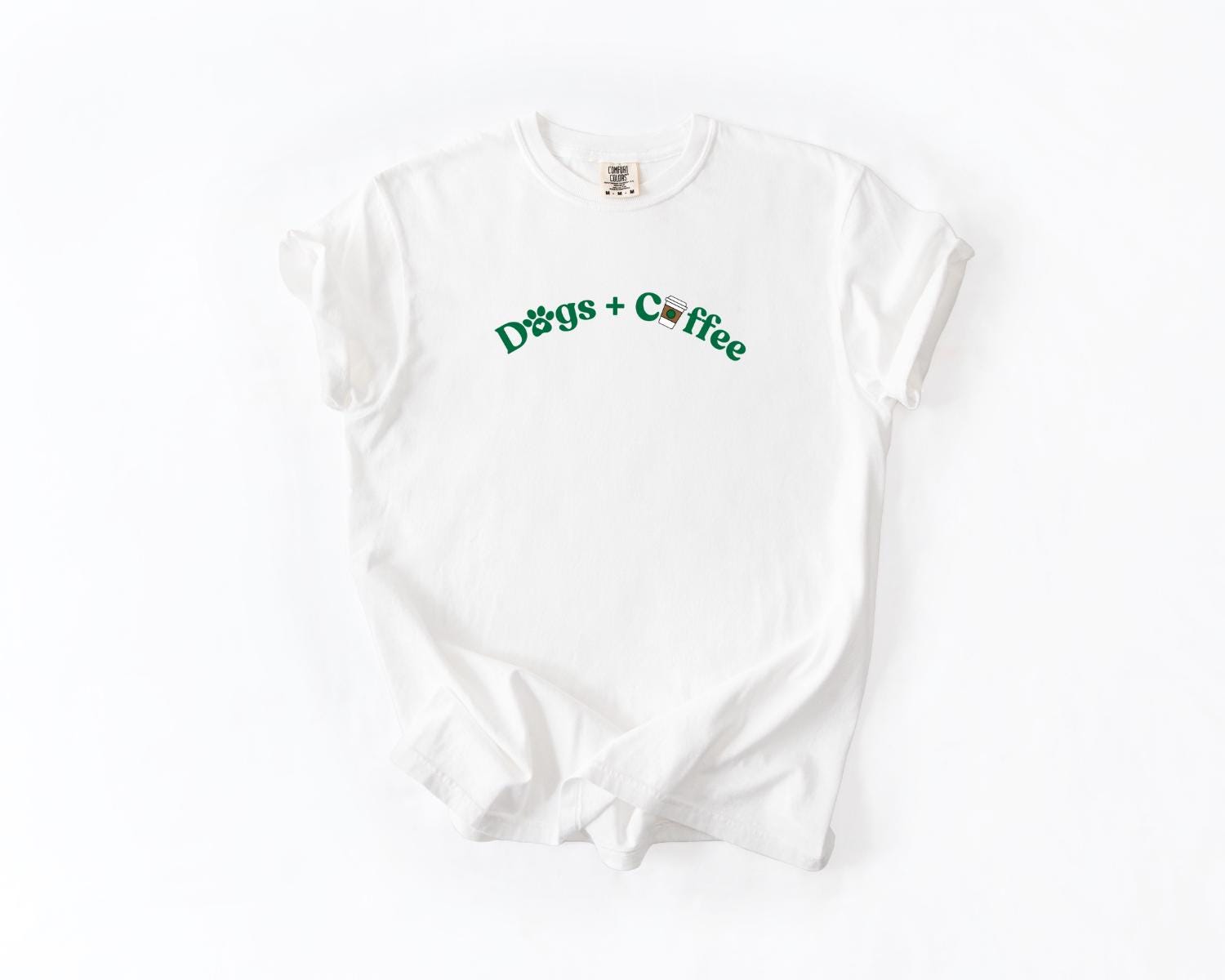 Dogs + Coffee T-Shirt, Comfort Colors, Aesthetic Graphic Tee, Pet Lover Gift, Dog Shirt, Dog Lover, Coffee Lover, Everyday Casual Wear