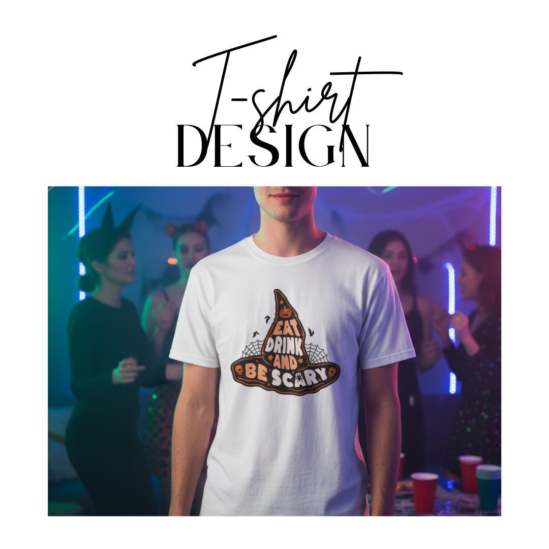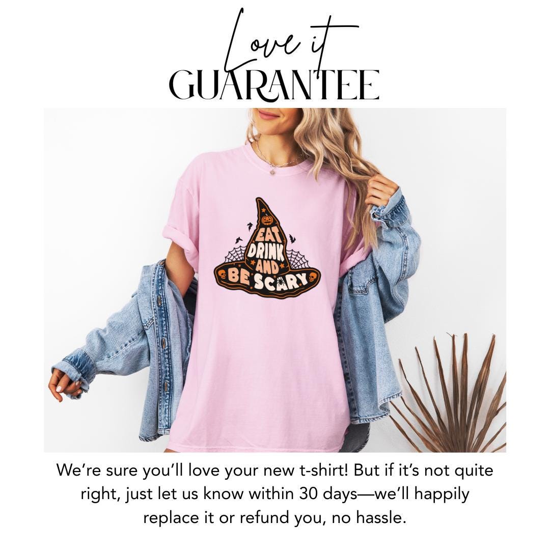 Eat Drink and Be Scary Halloween T-Shirt Comfort Colors Retro Witch Hat Pumpkin Tee Cute Spooky Season Fall Shirt Cozy Scary Season Shirt