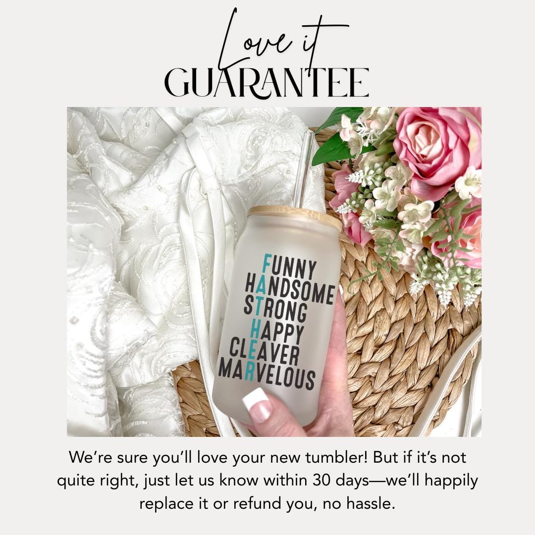 Funny Father Glass Cup 16 oz Frosted Glass with Bamboo Lid & Straw Father's Day Gift Cool Dad Mug Gift for Husband or Dad