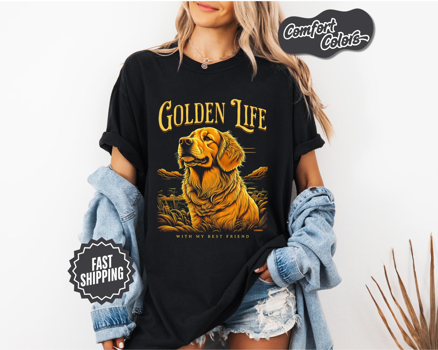 Golden Life Dog T-Shirt, Comfort Colors, Perfect for Dog Lovers, Animal Lover Gift, Birthday Gift, Golden Retriever Lover, Dog Tee