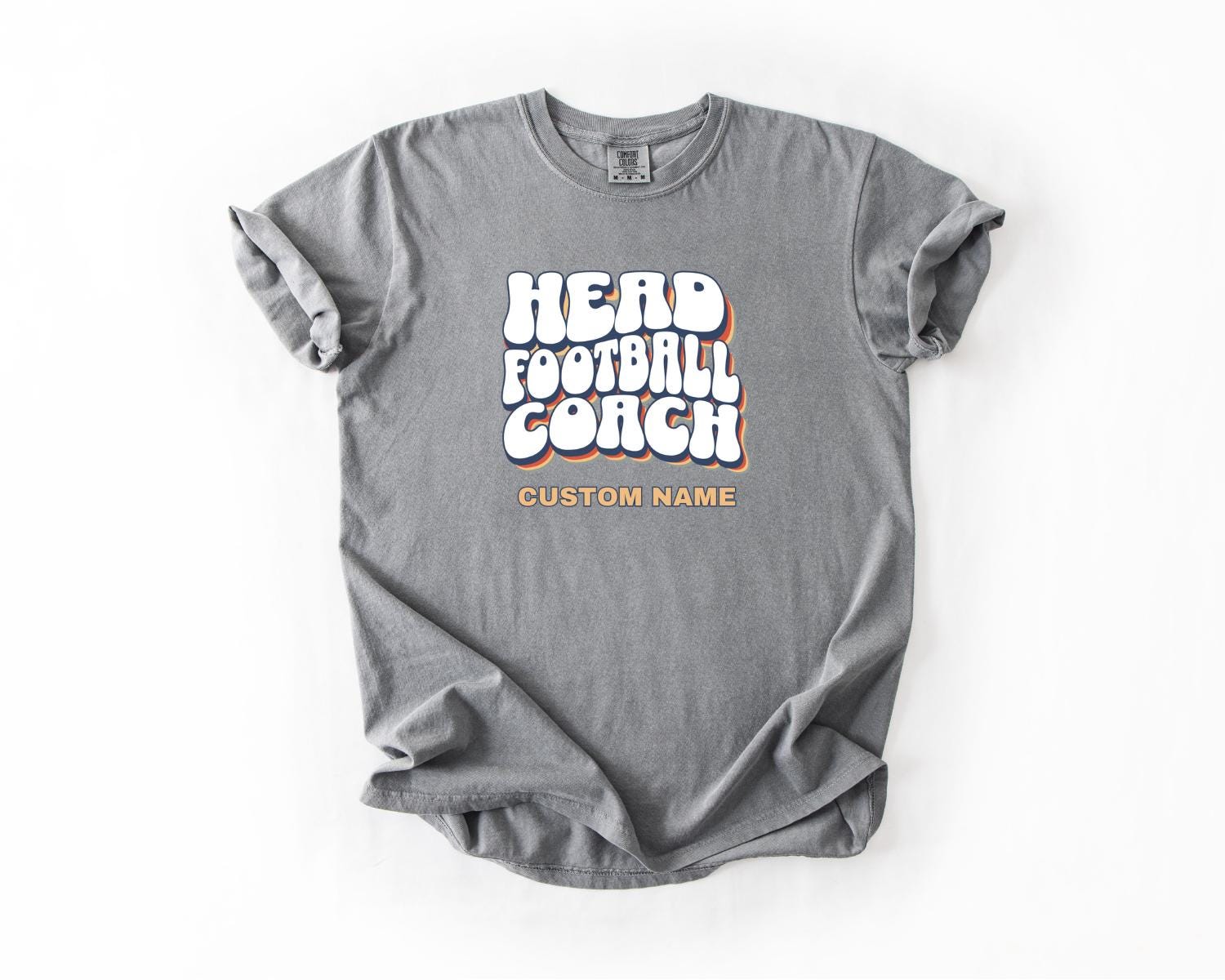 For the game-changers who lead with grit, strategy, and heart! 💪 This bold and retro-inspired Optimistic Gifts Co Customized Comfort Colors Head Football Coach tee is perfect for showing off your coaching pride on and off the field. Personalize it with a name or school name, or go classic with the standard design!