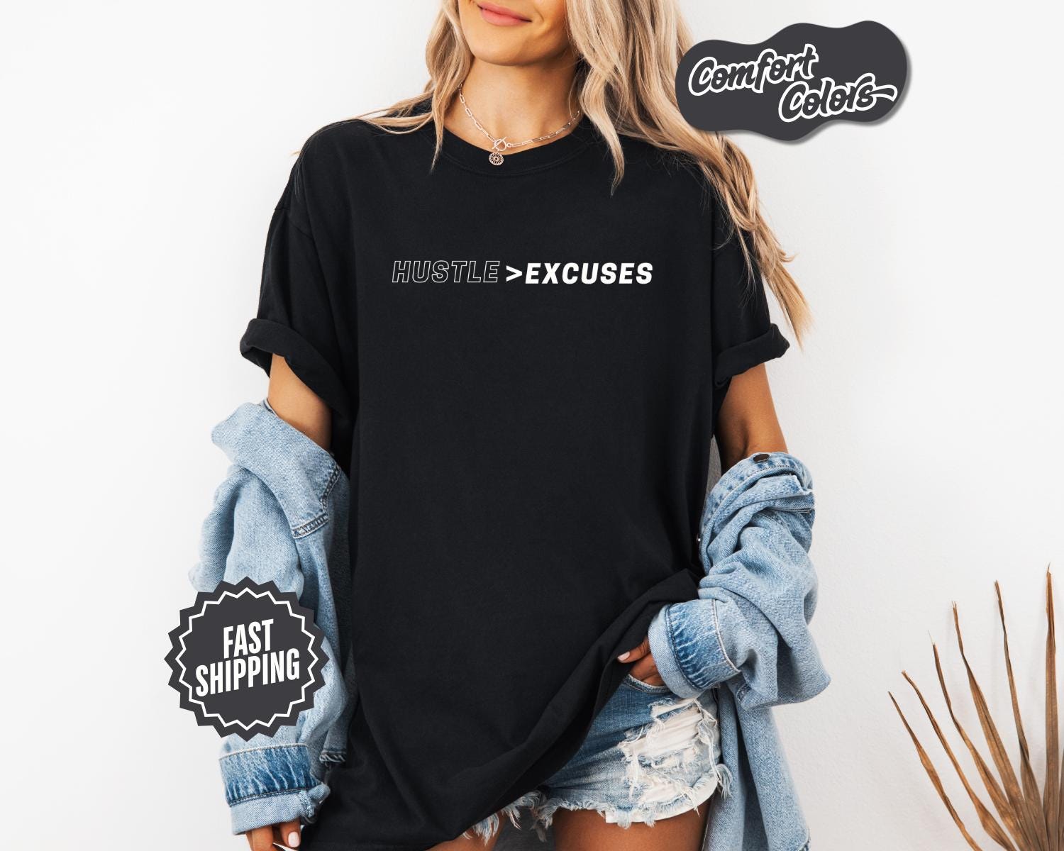 Hustle > Excuses Motivational T-Shirt, Comfort Colors, Unisex Streetwear, Everyday Reminder, Business Motivation Shirt, Everyday Casual Wear