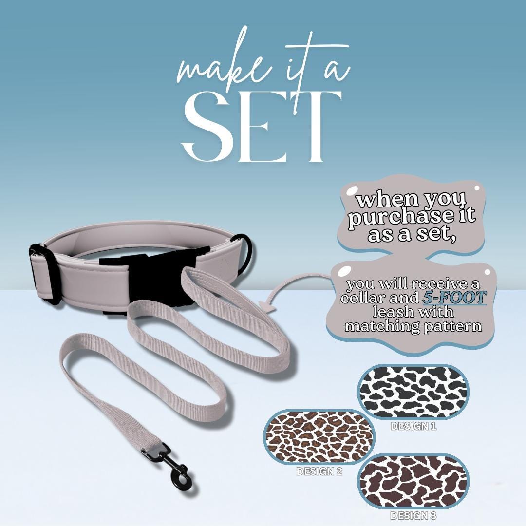 Personalized Animal Print Dog Collar with Name Engraved Cute Soft Animal Adjustable Collar & Leash Set Black / Gold Buckle Dog Gift (OG-114)