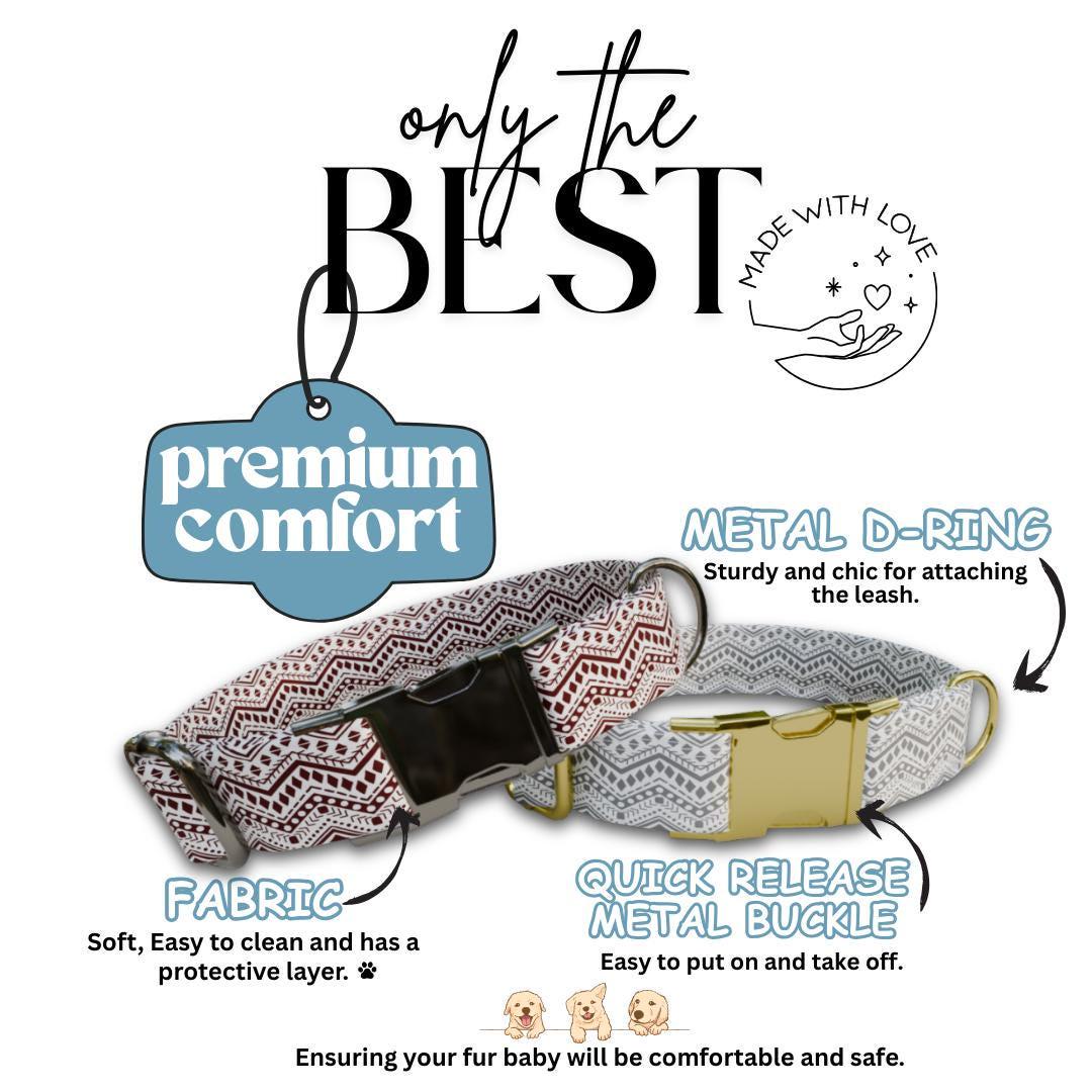 Personalized Boho Aztec Dog Collar with Name Engraved Cute and Soft Adjustable Collar & Leash Set, Black or Gold Buckle, Dog Gift (OG-09)