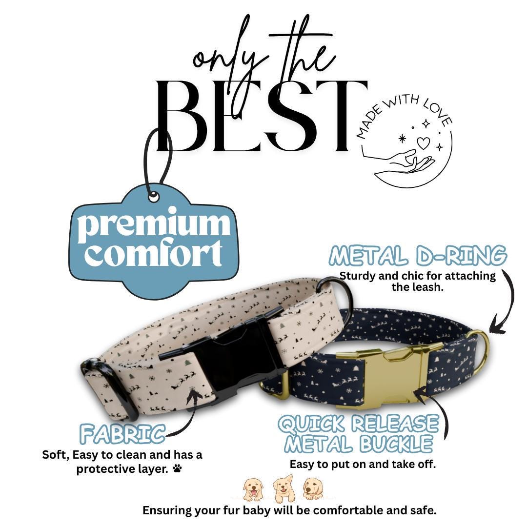 ❄️ 4 Adorable Designs: Pick from our festive patterns shown in the Dog Collar Designs slide — from classic trees to cozy holiday vibes!
