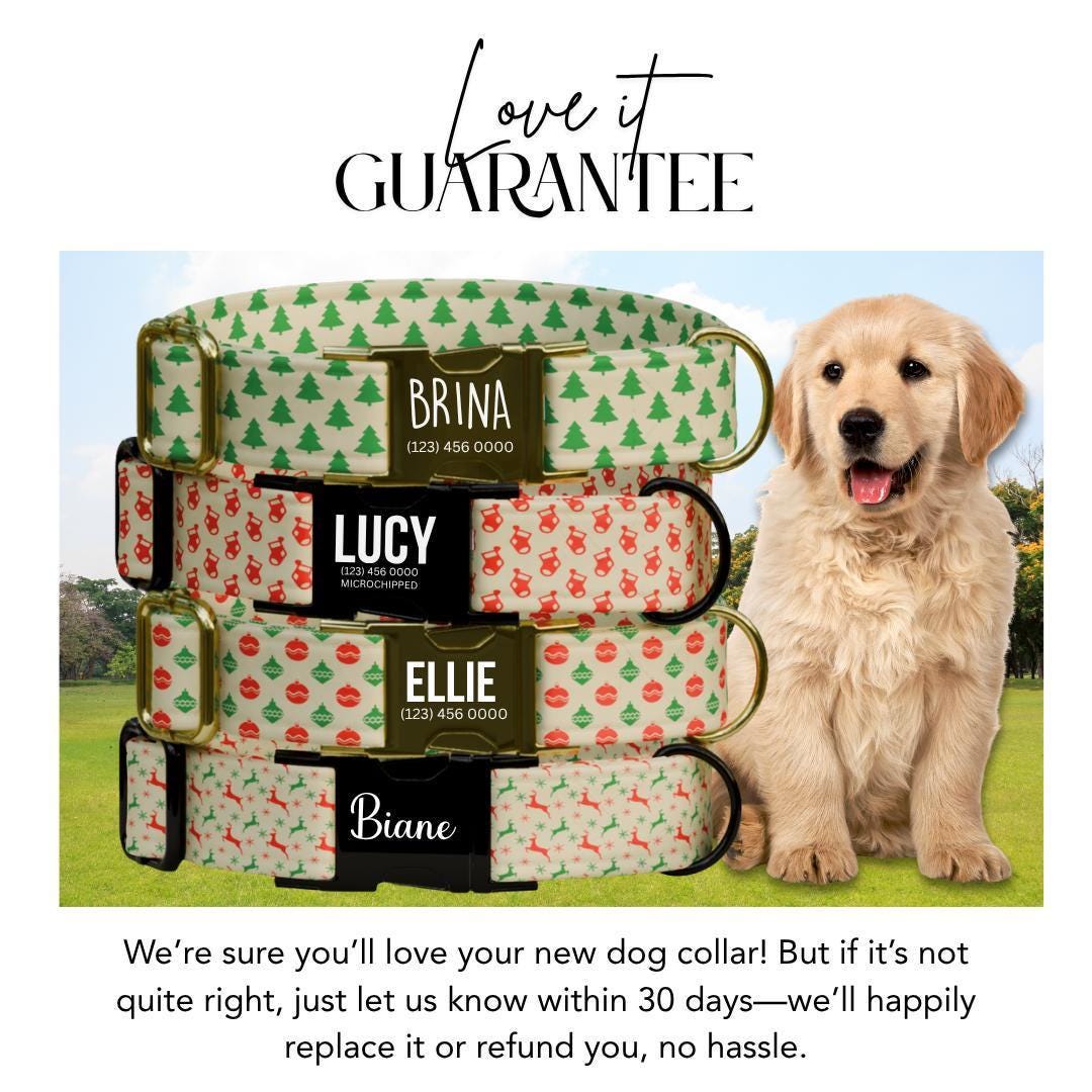 Make your pup the star of the season with our Optimistic Gifts Co Personalized Christmas Dog Collar! 🐶✨ Featuring adorable holiday patterns like Christmas trees, ornaments, reindeer, and mittens — it’s the perfect accessory for festive walks, family photos, and holiday fun! 🎄❤️