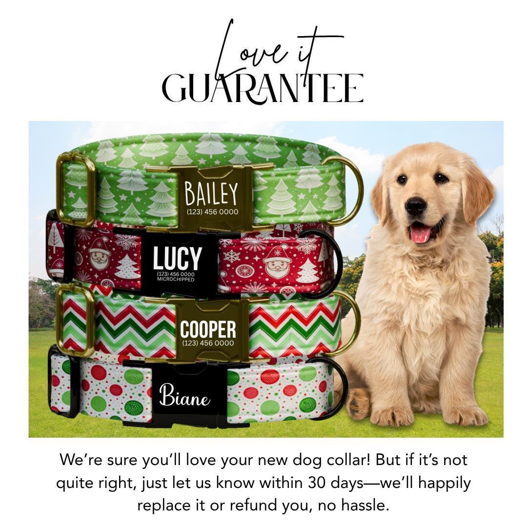 Personalized Christmas Dog Collar Custom Name Tag Festive Holiday Dog Collar with Metal Buckle & Adjustable Fit Christmas Dog Tag (OG-282)