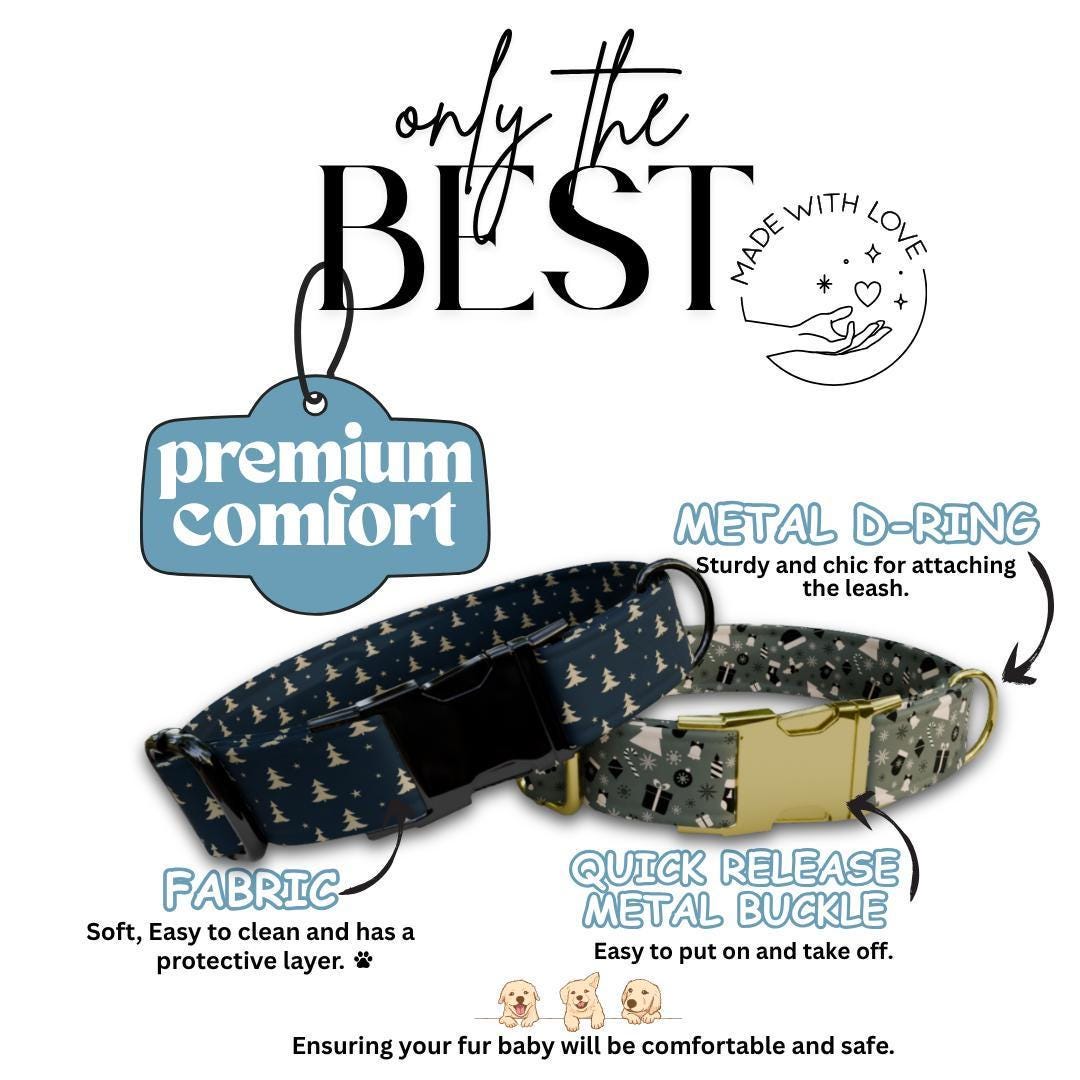 Personalized Christmas Dog Collar Custom Name Tag Holiday Dog Collar Cozy Holiday Design Adjustable & Durable with Metal Buckle (OG-236)