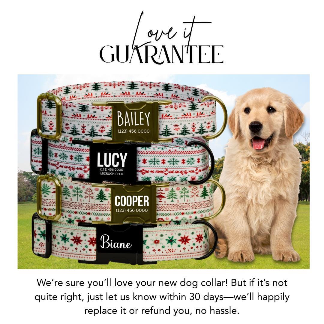 Personalized Christmas Dog Collar with Name Engraved Custom Holiday Name Tag Adjustable Collar & Leash Set Festive Winter Dog Leash (OG-225)