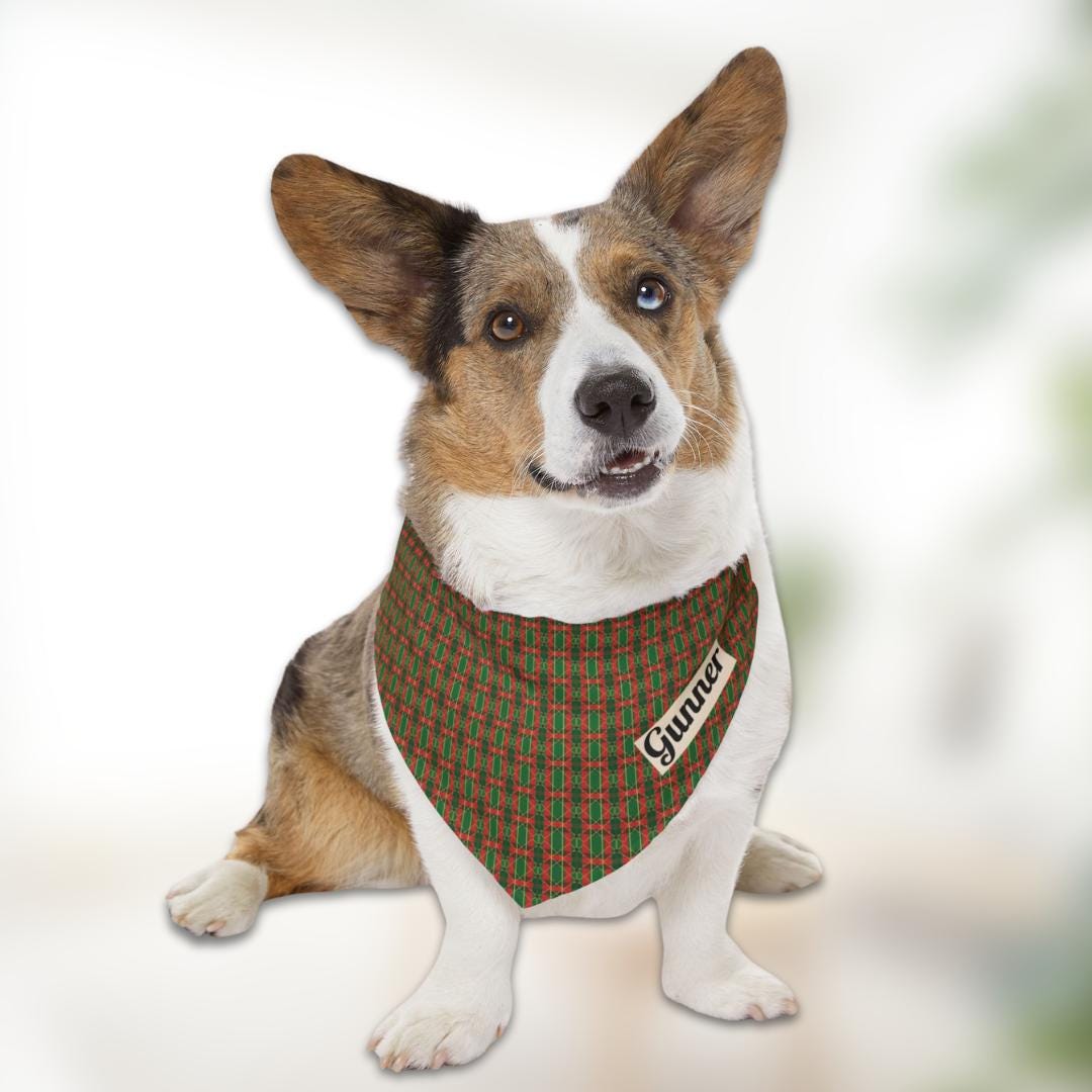 Personalized Christmas Pet Bandana Built-In Collar Custom Dog and Cat Bandana with Name Festive Plaid Designs Holiday Photo Outfit For Pets