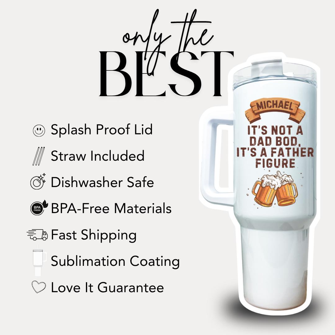 Personalized Dad 40oz Tumbler with Straw Personalized with Kids’ Names Gift for Dad “It’s Not a Dad Bod, It’s a Father Figure” Quote Dad Cup