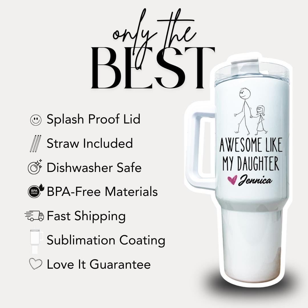 Perfect for coffee on-the-go, iced drinks at work, or just repping how great his daughter really is! Great for Father's Day, birthdays, or a surprise "just because" gift.