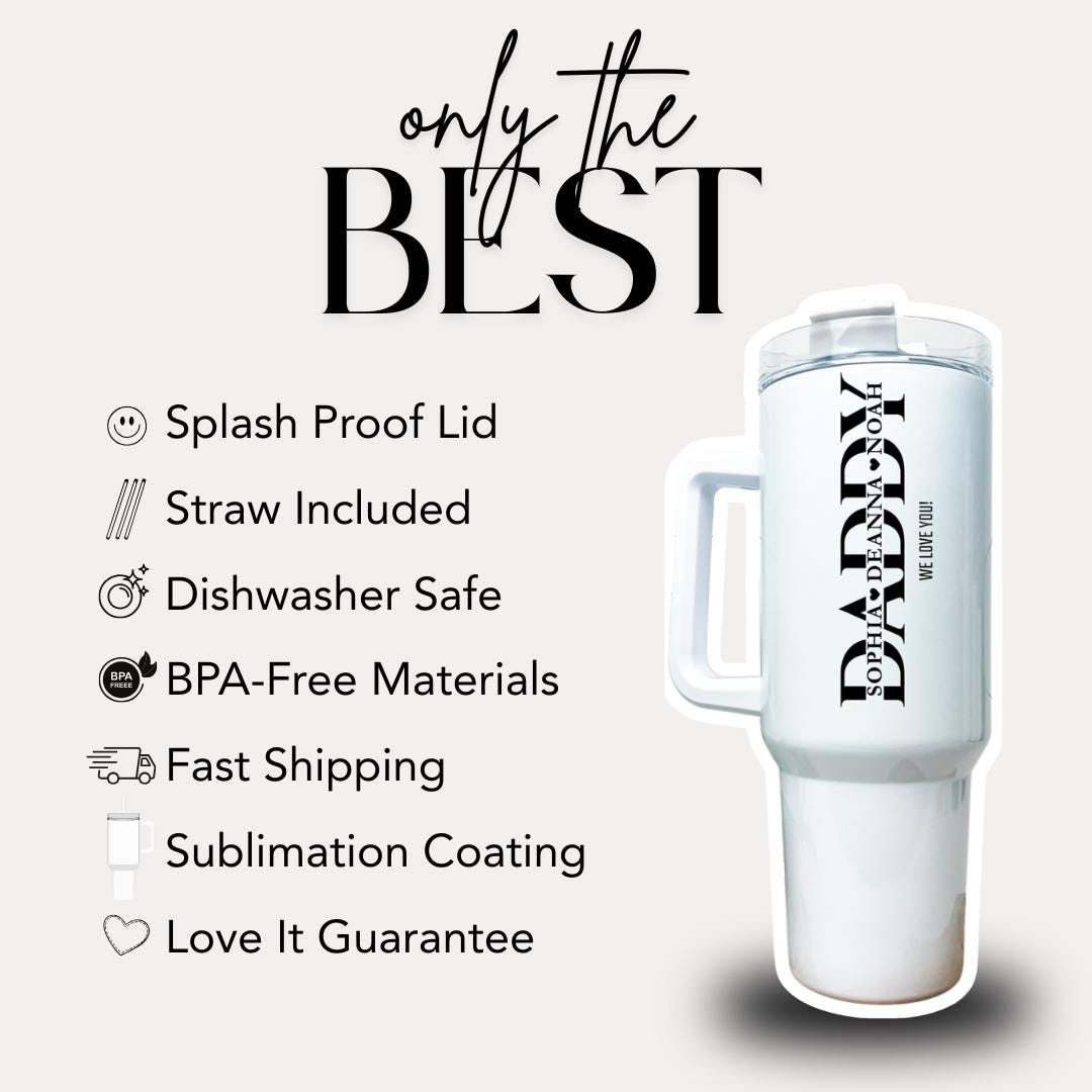 Personalized Daddy 40oz Tumbler with Straw Personalized with Kids’ Names Gift for Daddy Gift for Daddy Dad Travel Coffee Cup Tumbler for Dad
