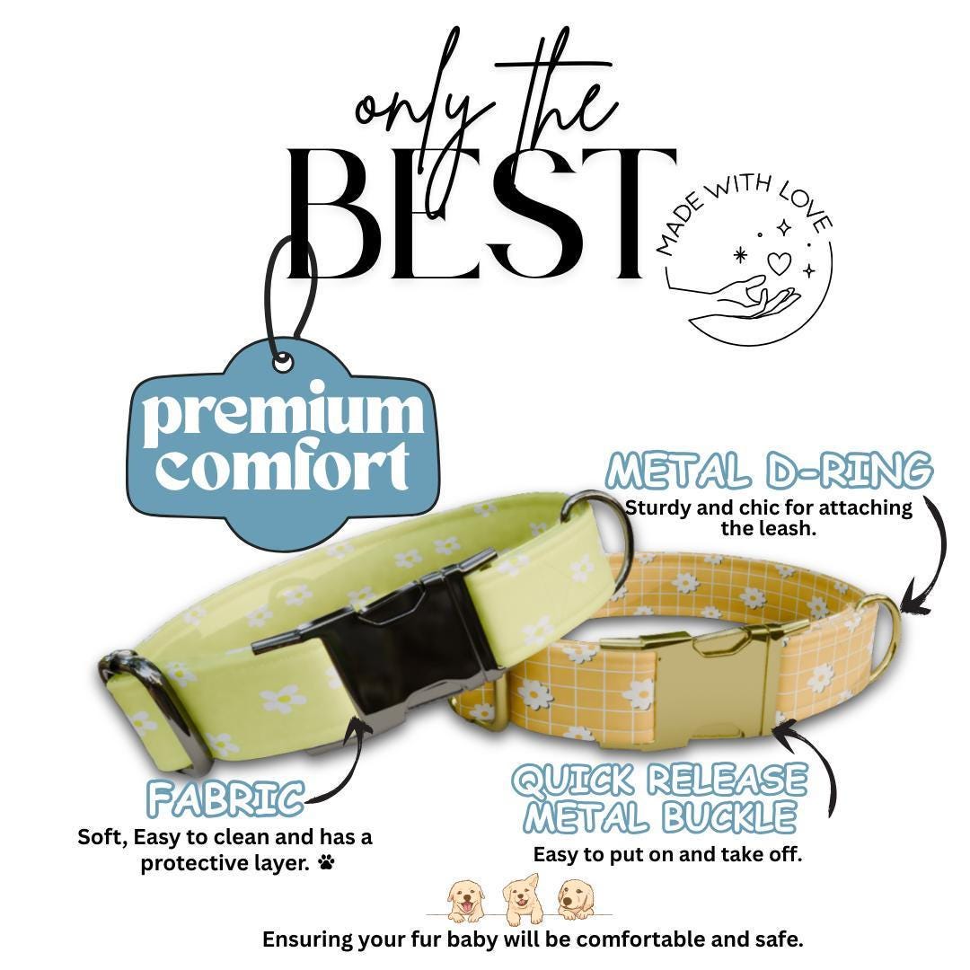 Personalized Daisy Floral Dog Collar with Name Engraved Cute & Soft Adjustable Collar Leash Set Unique Daisy Floral Pet Dog Tag Gift (OG-72)