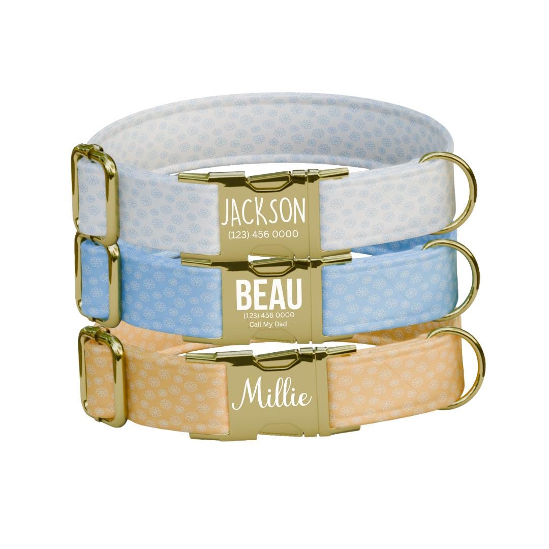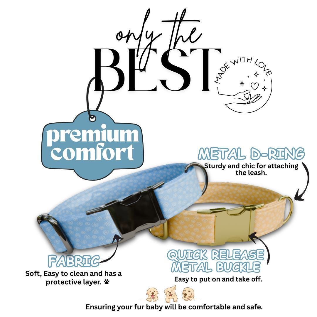 Your pup deserves to bloom in style! πΈπΎ Our Optimistic Gifts Co Floral Collection Dog Collars are designed to be as charming and unique as your best furry friend. With FREE custom engraving, you can add your dog's name + contact info, making it both adorable and practical. Perfect for playful walks, cuddly naps, and everything in between! π