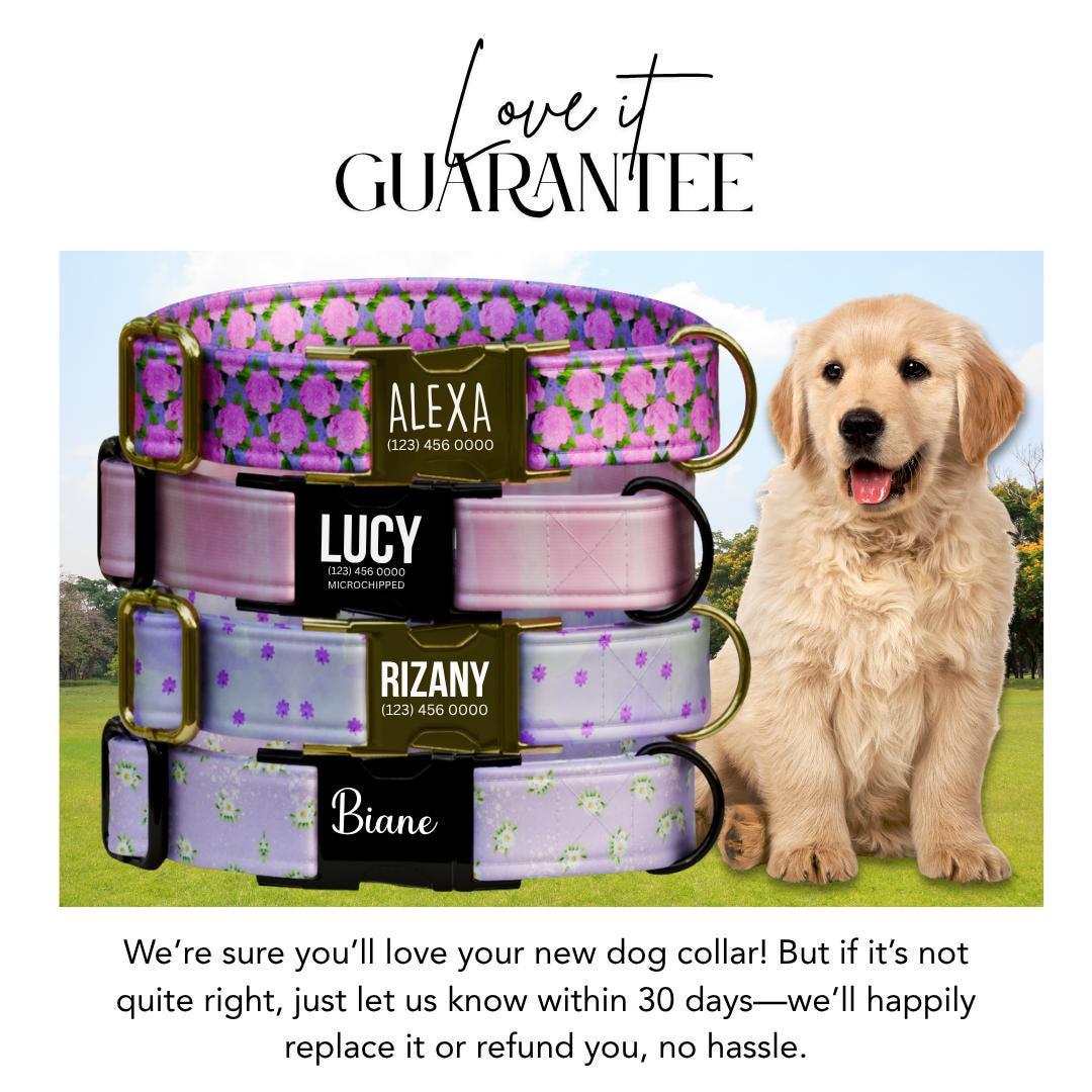 Personalized Floral Dog Collar for Girls with Name Engraved Cute Stylish Flower Print Tag Collar Dogs Adjustable Collar & Leash Set (OG-275)