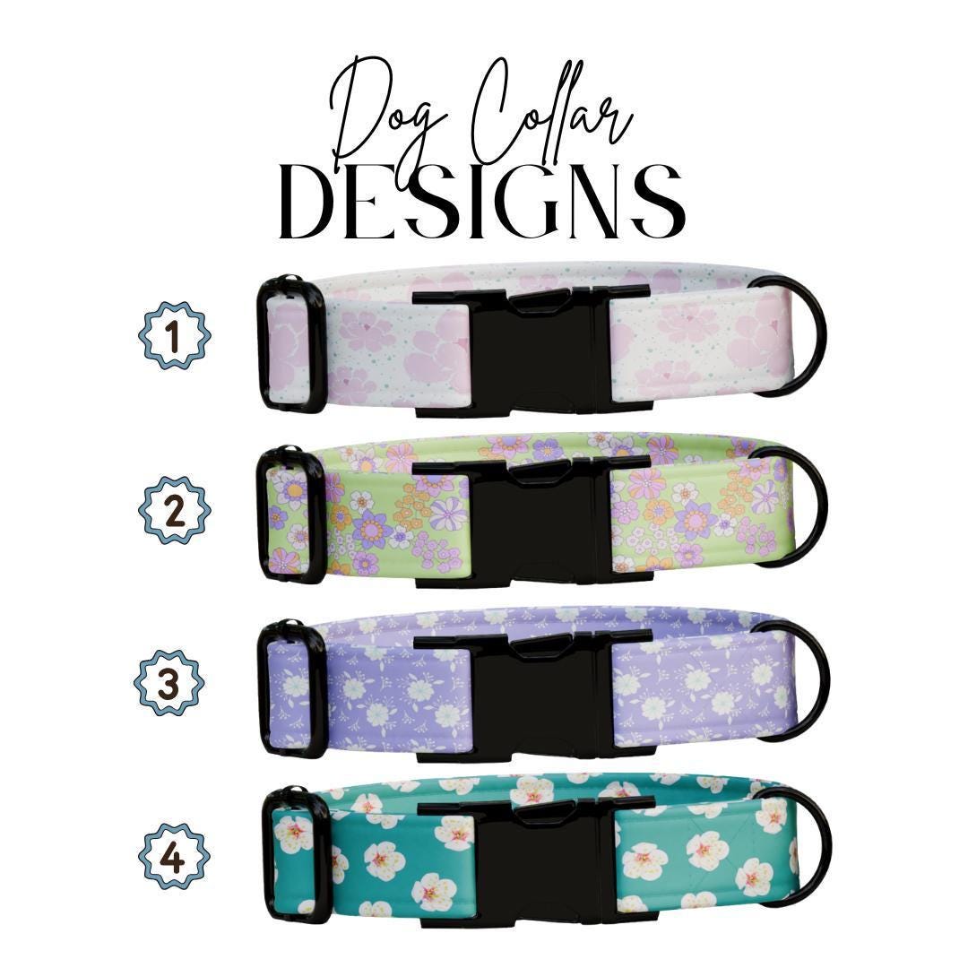 π¨ Pick from four charming floral designs featured in the βDog Collar Designsβ slide β perfect for lovely pups like Luna, Calie, Marie, and Bianca! πΊπ