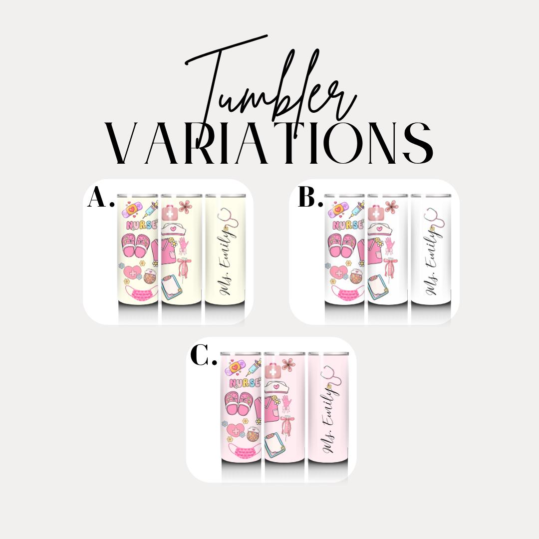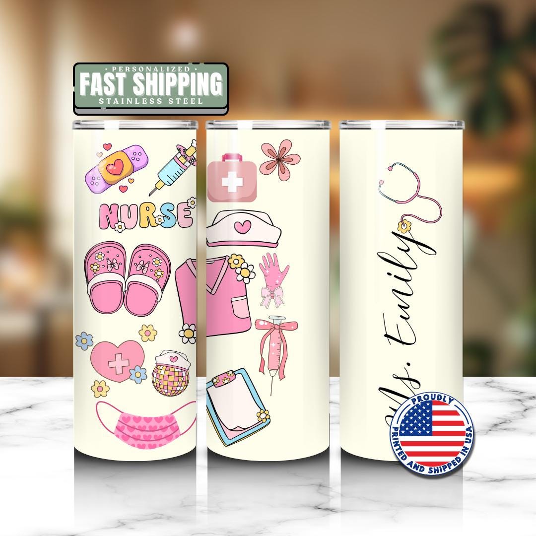 Personalized Nurse 20 oz Skinny Tumbler with Straw Custom Name Nurse Tumbler Cute Nurse Appreciation Gift for Nurse Tumbler Coffee Mug