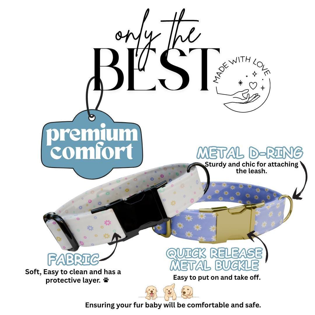 🎨 Four Adorable Designs: Pick from cute floral, plaid, or daisy-inspired patterns featured in our “Dog Collar Designs” slide!