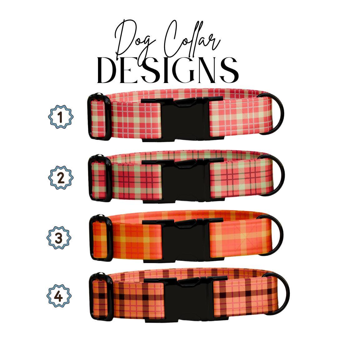 Personalized Pink Plaid Dog Collar with Name Engraved Custom Pet Name ID Collar for Pets Collar & Leash Set Plaid Pink Dog Collar (OG-183)