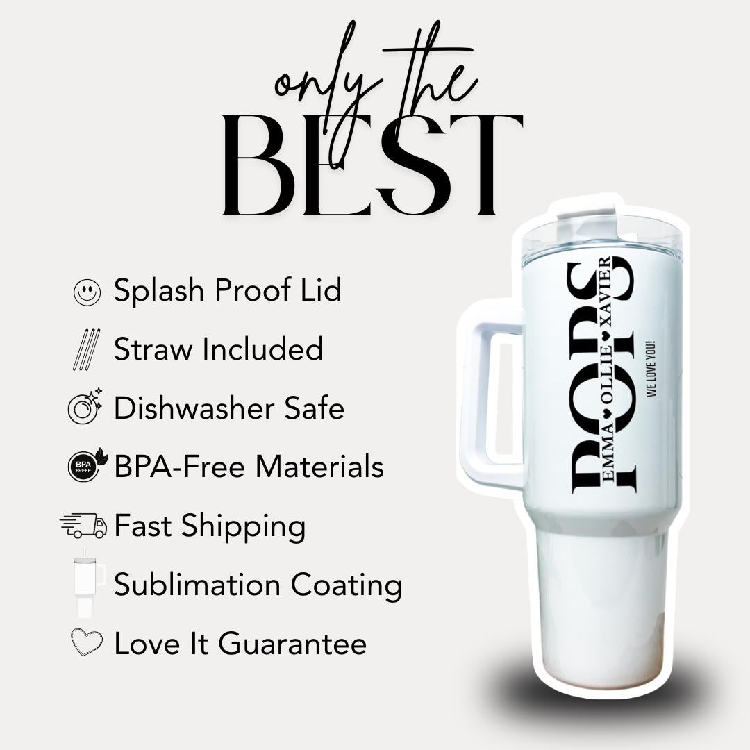 Personalized Pops 40oz Tumbler with Straw Personalized with Grandchildren Name Gift for Pops Travel Coffee Cup Tumbler for Pops Best Pops
