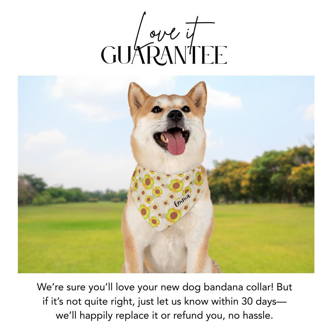 Personalized Retro Flower Pet Bandana Collar Custom Name Dog Bandana Adjustable Built-In Collar for Dogs & Cats Groovy Floral Pet Accessory