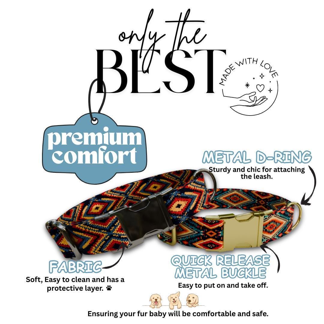 Personalized Southwestern Dog Collar with Name Engraved, Cute and Soft Adjustable Collar & Leash Set, Black or Gold Buckle Dog Gift (OG-25)