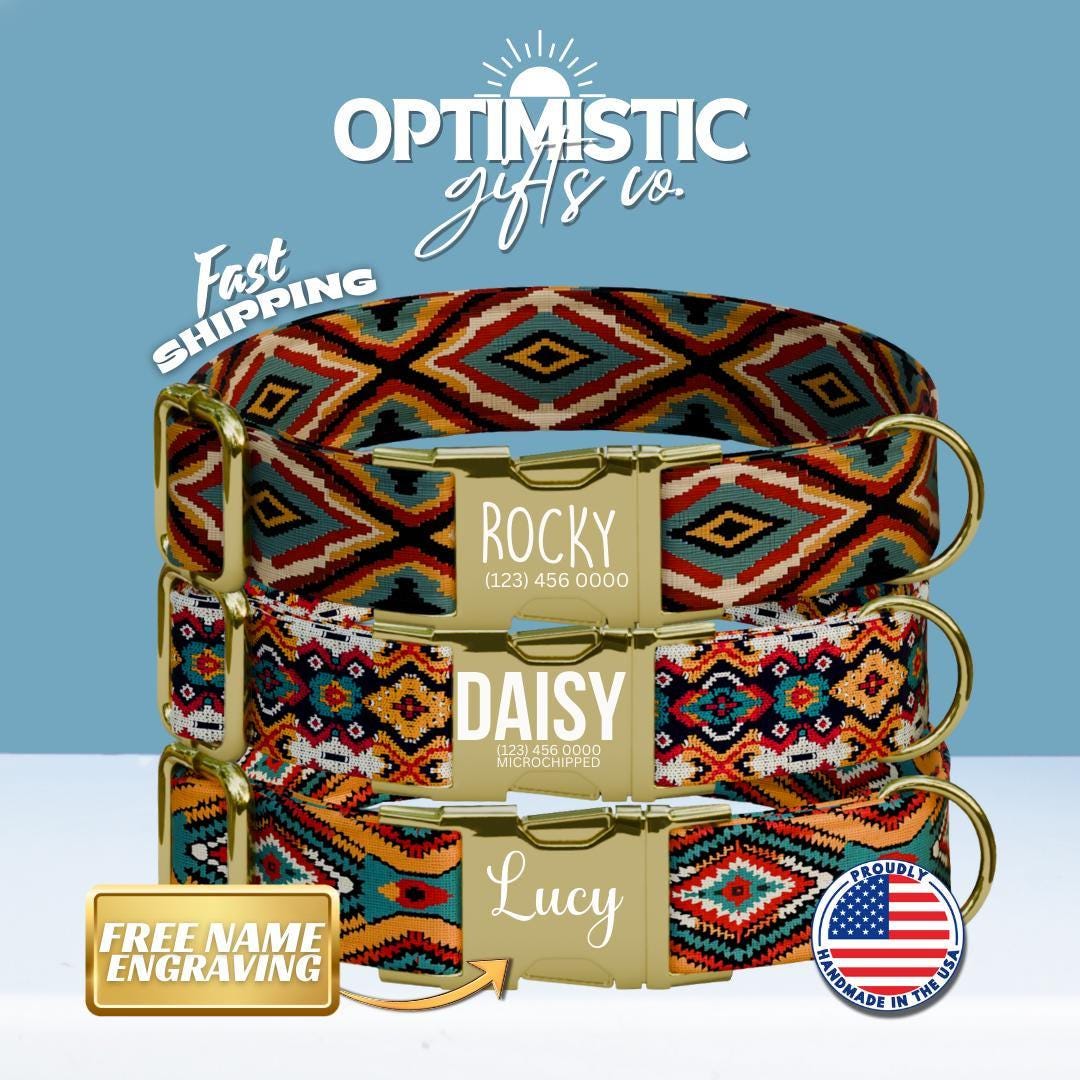 Your pup deserves more than "just a collar" - they deserve a statement piece. Our Optimistic Gifts Co Custom Southwestern Dog Collars combine comfort, durability, and head-turning style so your fur baby will look fetching wherever they go. ππ