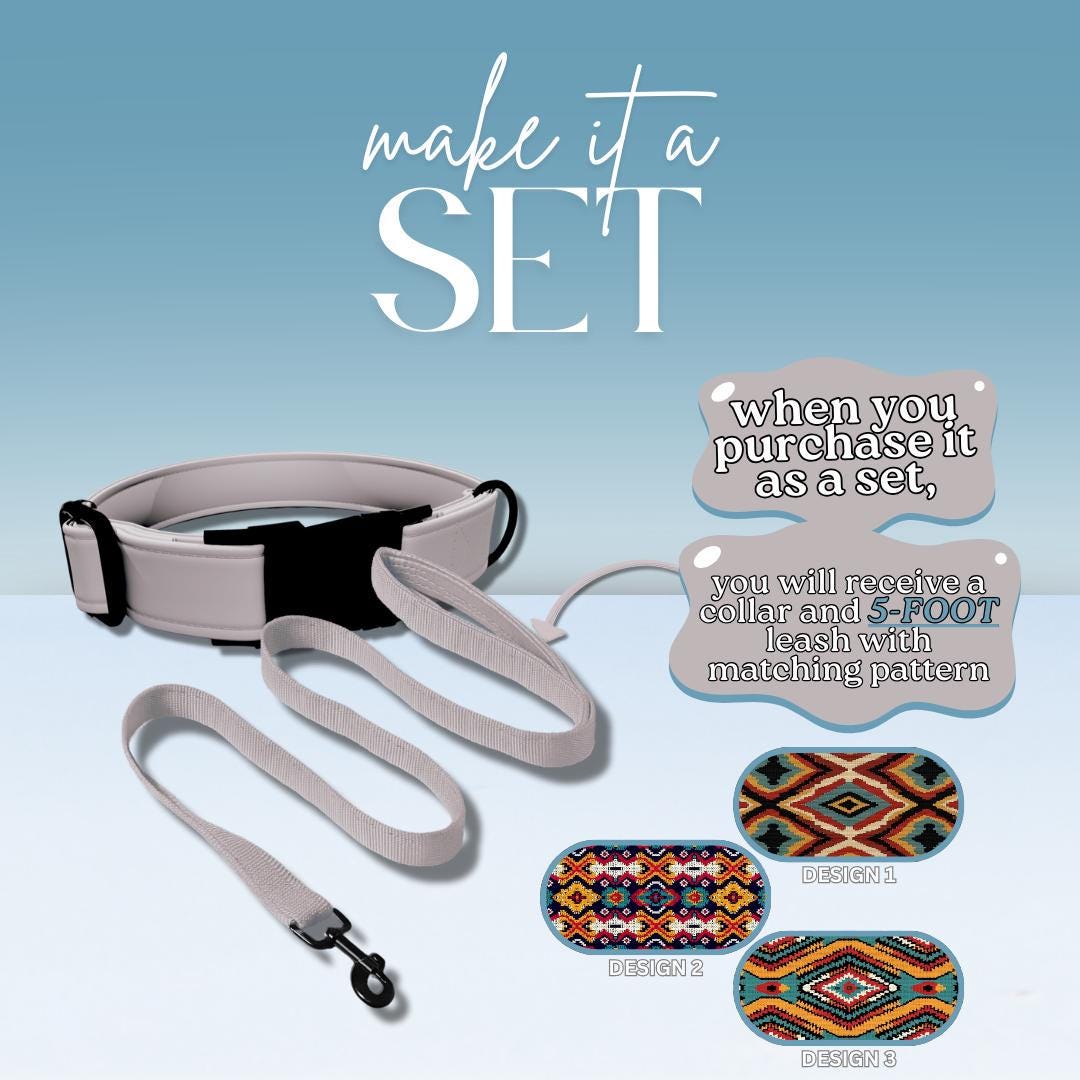 Personalized Southwestern Dog Collar with Name Engraved, Cute and Soft Adjustable Collar & Leash Set, Black or Gold Buckle Dog Gift (OG-43)