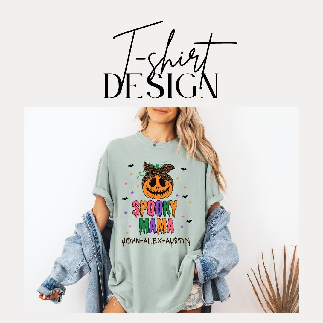 Personalized Spooky Mama Halloween Comfort Colors T-shirt Customized Kids' Name Shirt Boo Crew Shirt Spooky Season Gift Halloween Mom Shirt
