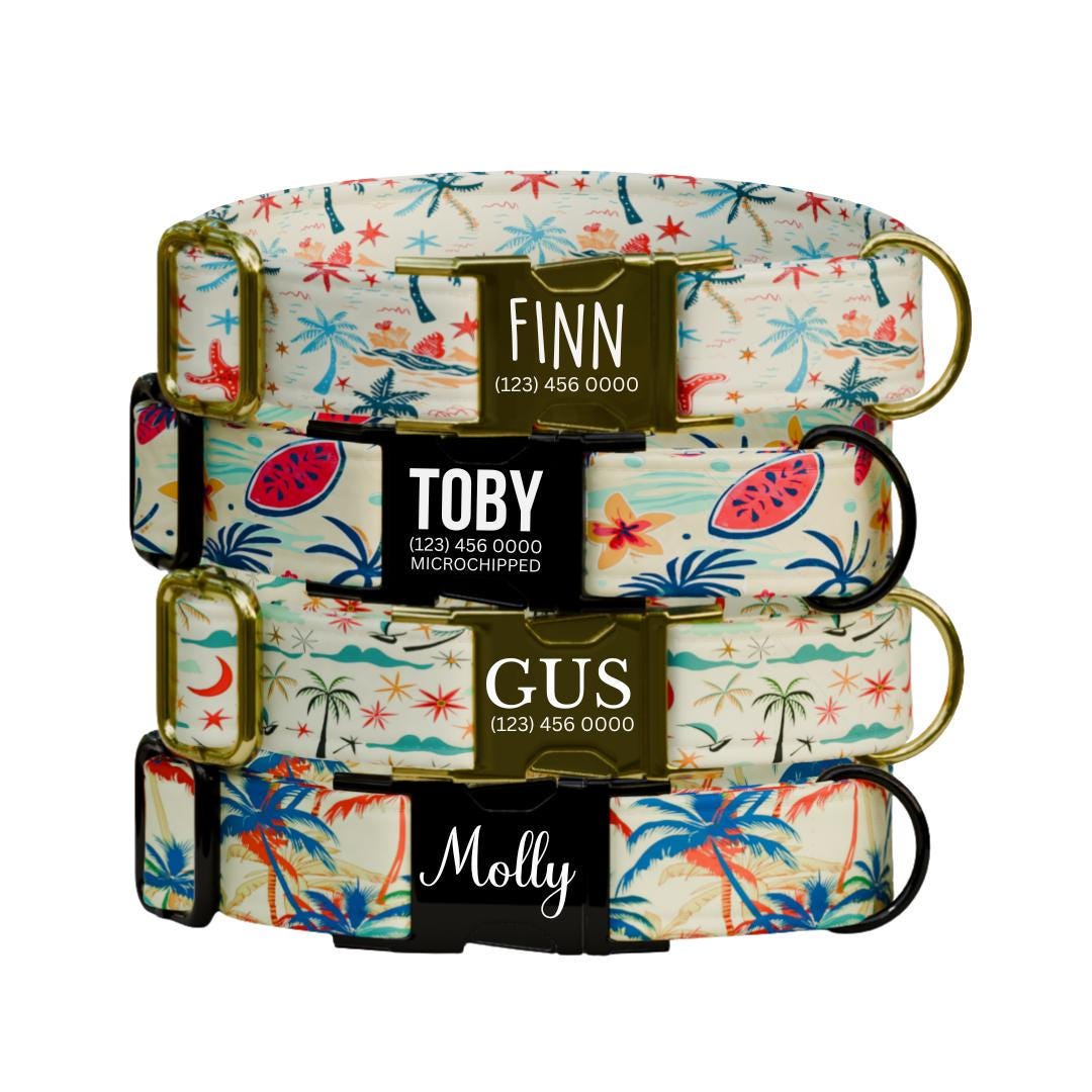 Personalized Tropical Dog Collar with Name Engraved Custom Tag for Dog Collar & Leash Set Cute Beach Dog Collar Gift for Dog Lover (OG-160)