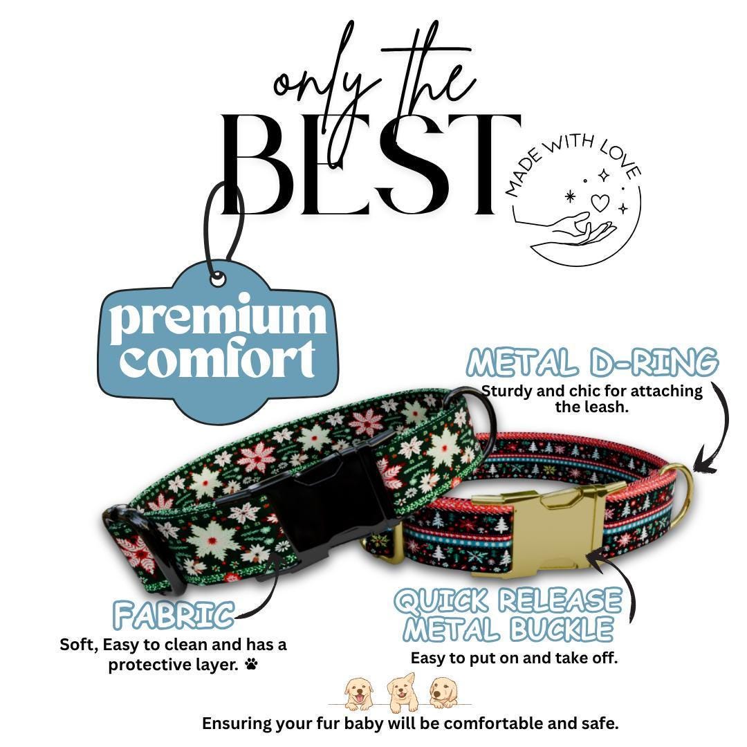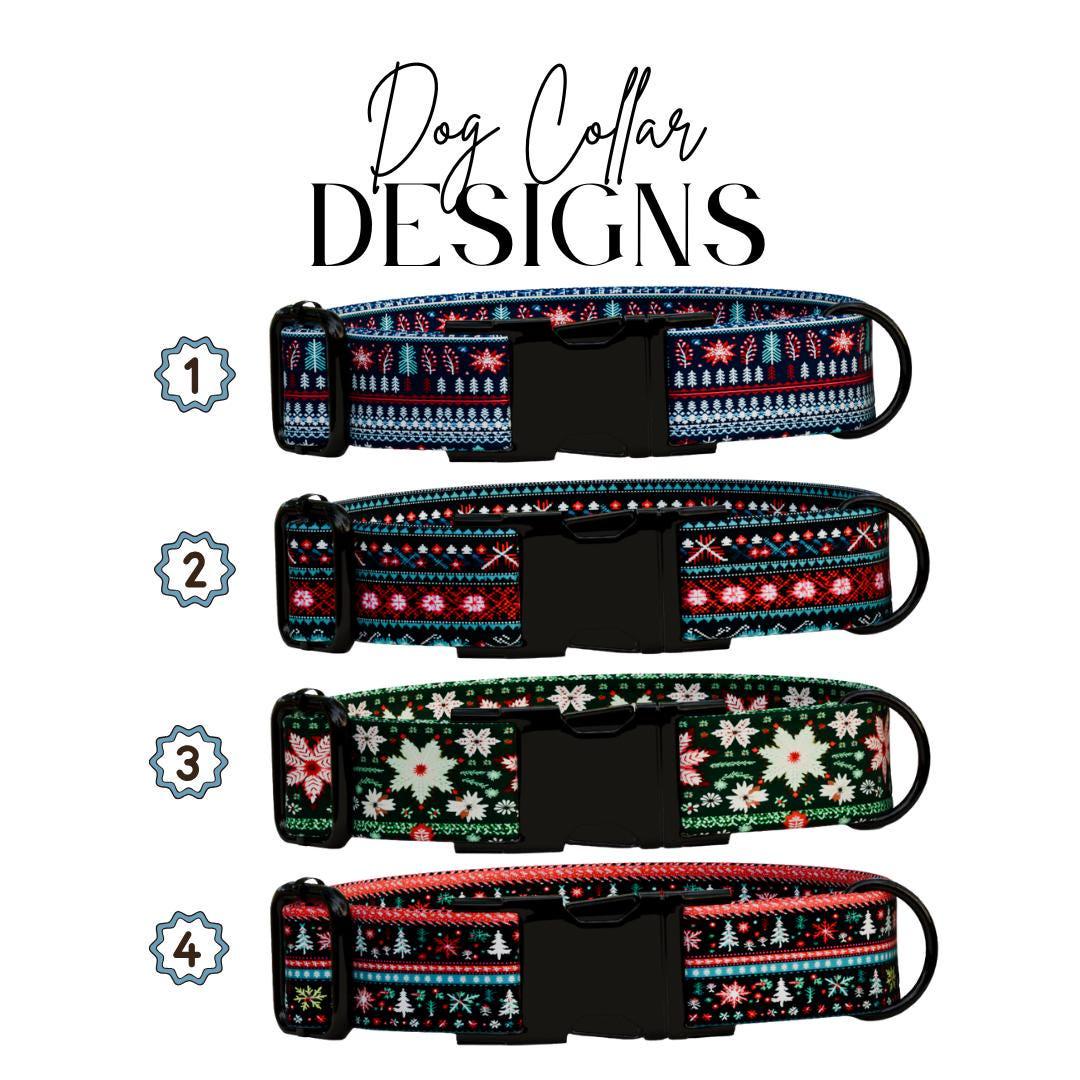Personalized Ugly Christmas Dog Collar with Name Engraved Custom Name Tag Adjustable Collar & Leash Set Festive Flurries Dog Tag (OG-222)