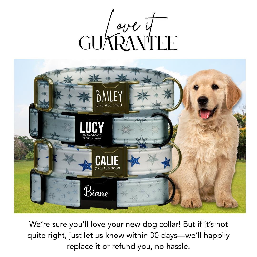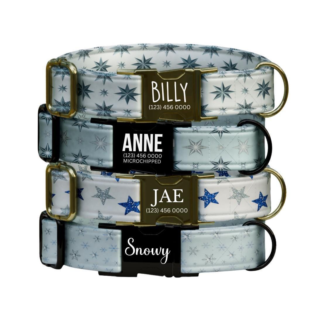 Personalized Winter Dog Collar Custom Name Tag Snowflake Holiday Dog Collar with Metal Buckle & Adjustable Fit Christmas Dog Tag (OG-285)