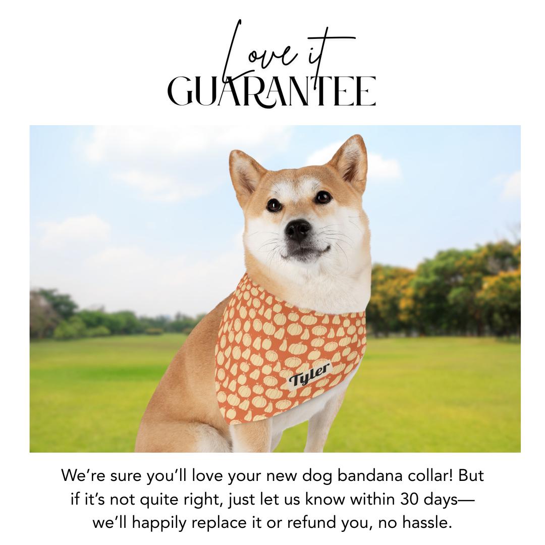 This Personalized Pumpkin Pet Bandana Collar is the perfect custom accessory for dogs & cats during the fall season. The cute autumn design adds a festive touch to your pet‘s look, making them stand out during Halloween and Thanksgiving celebrations. The adjustable strap ensures a comfortable fit, while the durable polyester material ensures long-lasting use.
