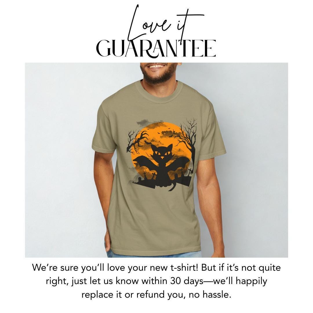 Spooky Cat Bat Halloween T-Shirt Comfort Colors Soft Cozy Fall Outfit Gift for Cat Lover Spooky Moon Fall Clothing Trick or Treat Shirt Gift