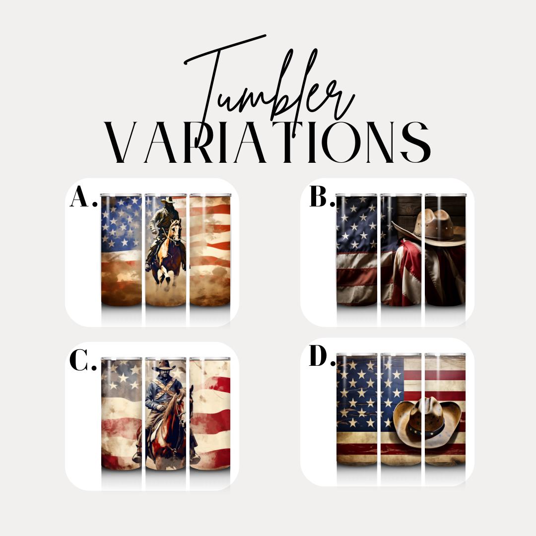 US Cowboy American Flag Tumbler 20oz Skinny Tumbler American Flag Western Horse Rider Mug Rustic Patriotic Gift for Men Country Gift for Dad