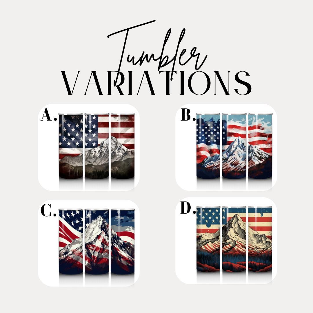 US Patriotic Mountain Tumbler 20oz Skinny Tumbler American Pride Tumbler Veteran Gift Outdoor Drinkware Gift for Veteran 4th of July Gift